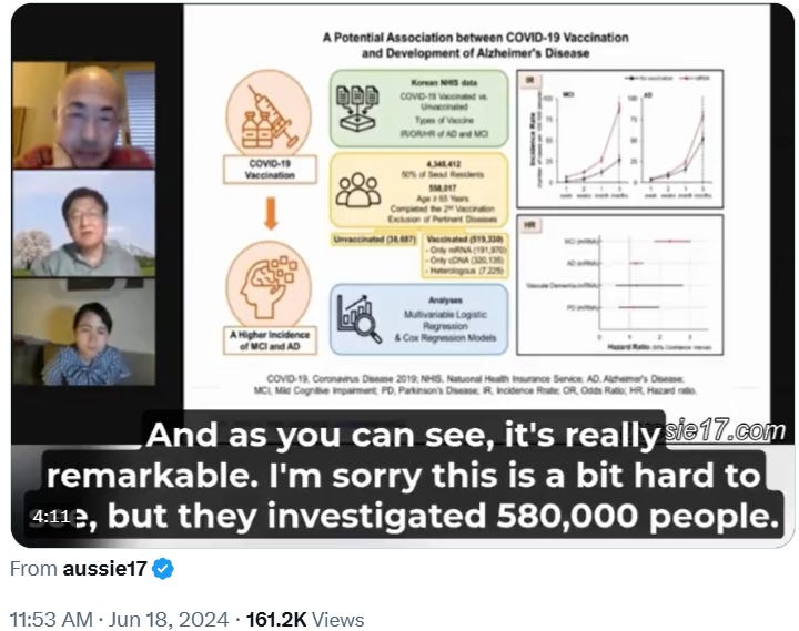 The doctor then went on to discuss the study that indicates significant increases of Alzheimer’s disease (AD) and mild cognitive impairment (MCI) in those injected with the mRNA gene therapy shots.