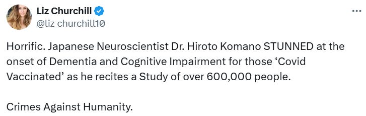 “Regarding replicon and mRNA vaccines, I would like to discuss their connection with dementia. This is something I strongly wish to share,” Komano said. “The incidence of mild cognitive impairment has more than doubled.”