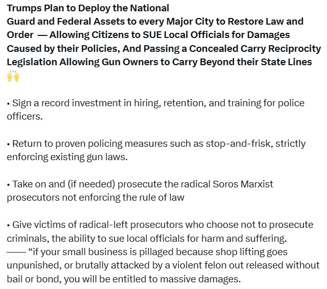 President Trump’s Plan to Deploy the National Guard and Federal Assets to Every Major City to Restore Law and Order!